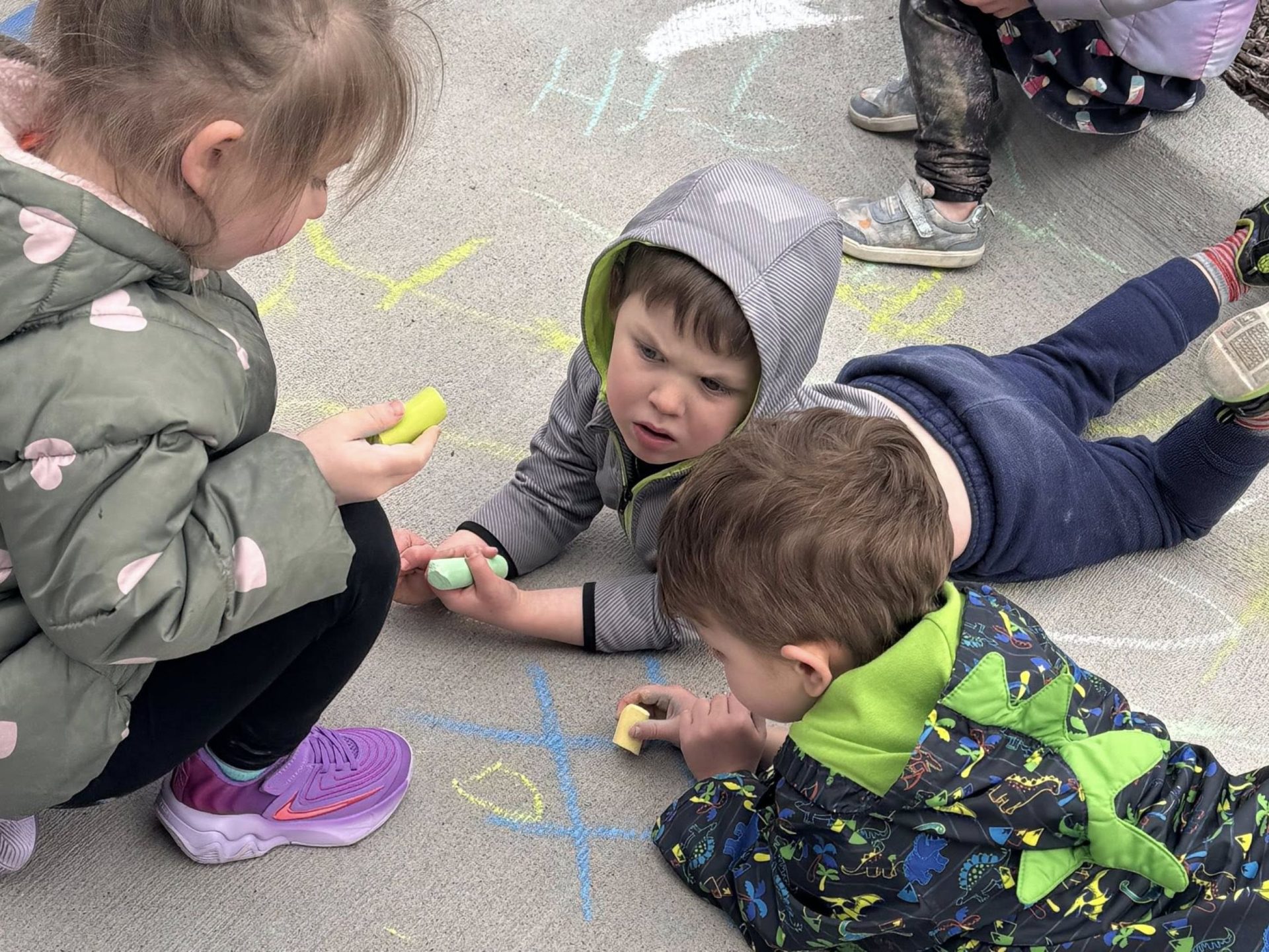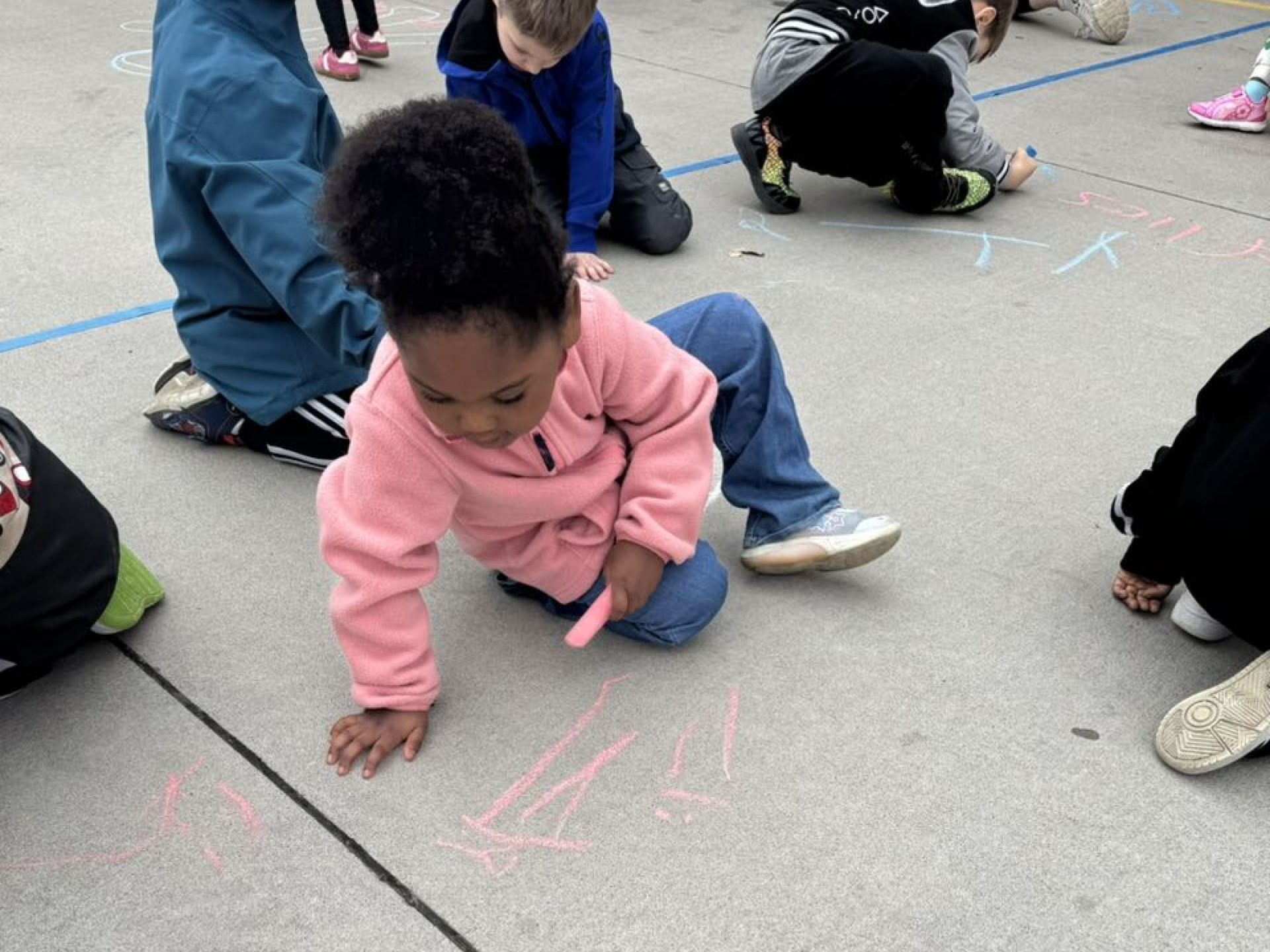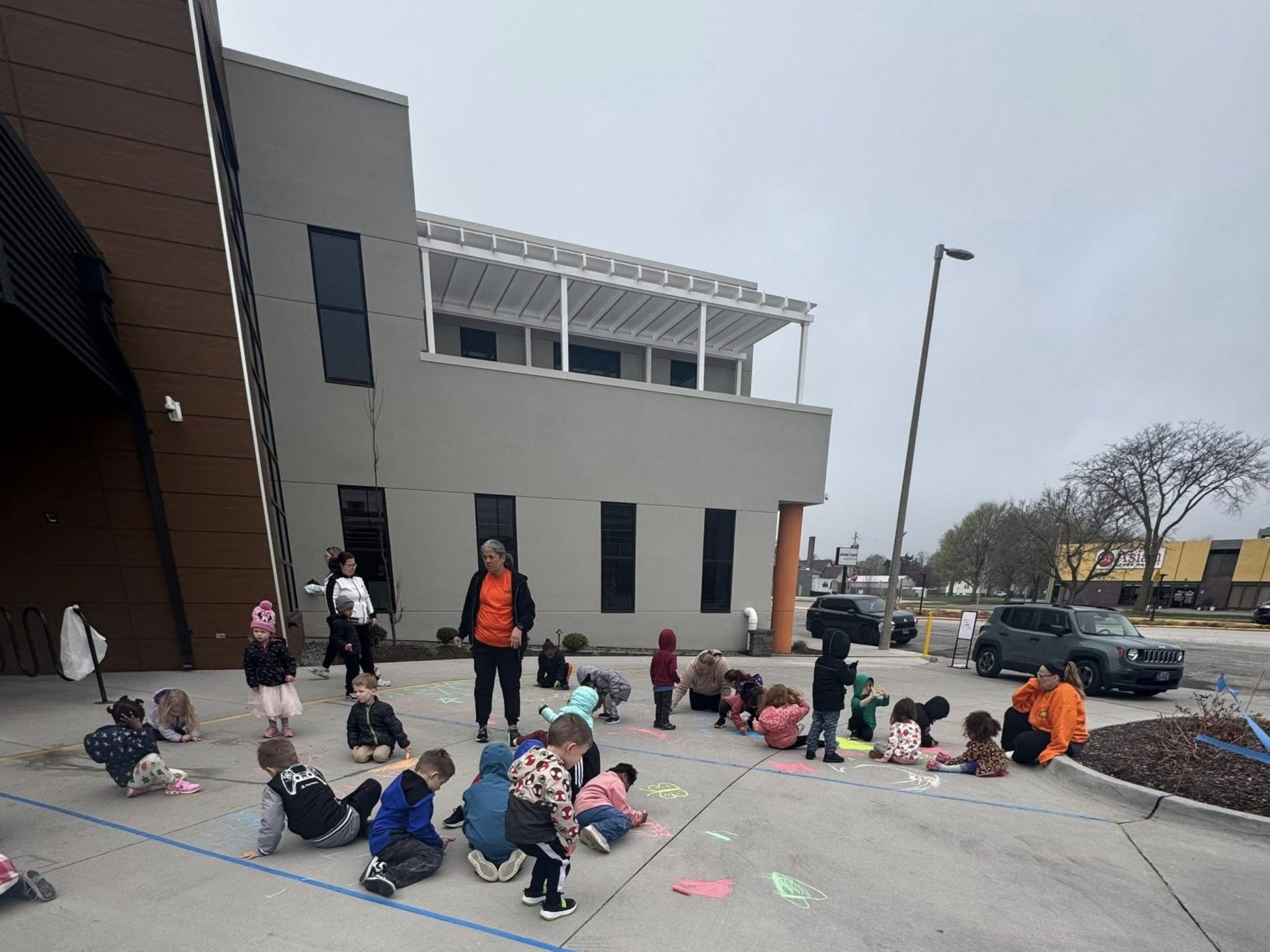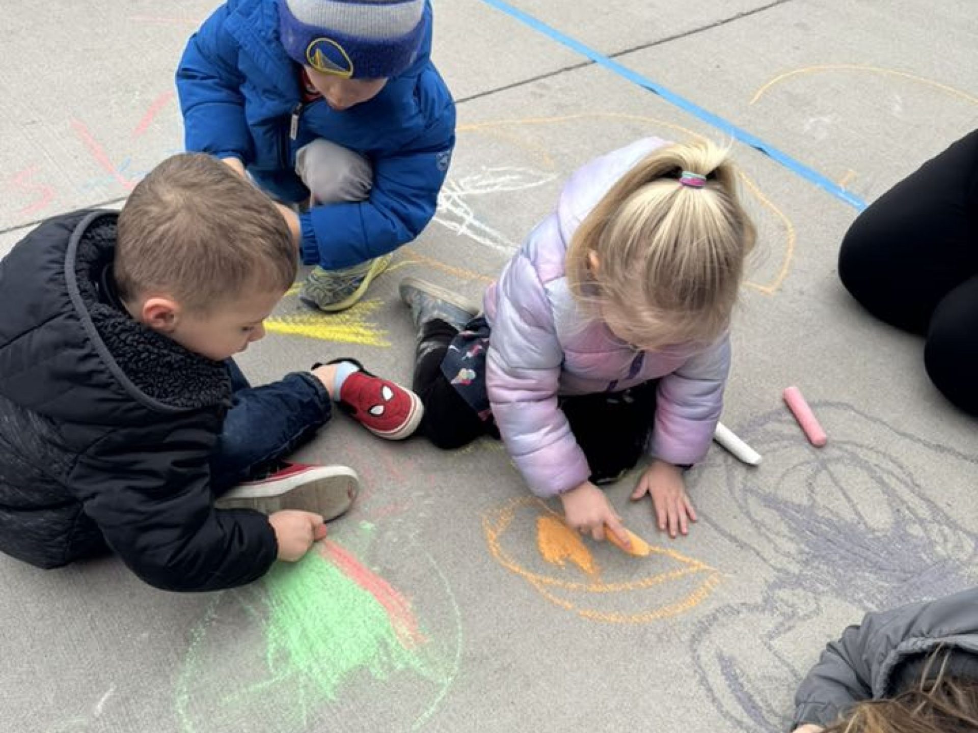 Thursday was Artsy Thursday. Students participated in arts and crafts and worked together on one large masterpiece. Using chalk, students worked together to make the entrance of the building beautiful.