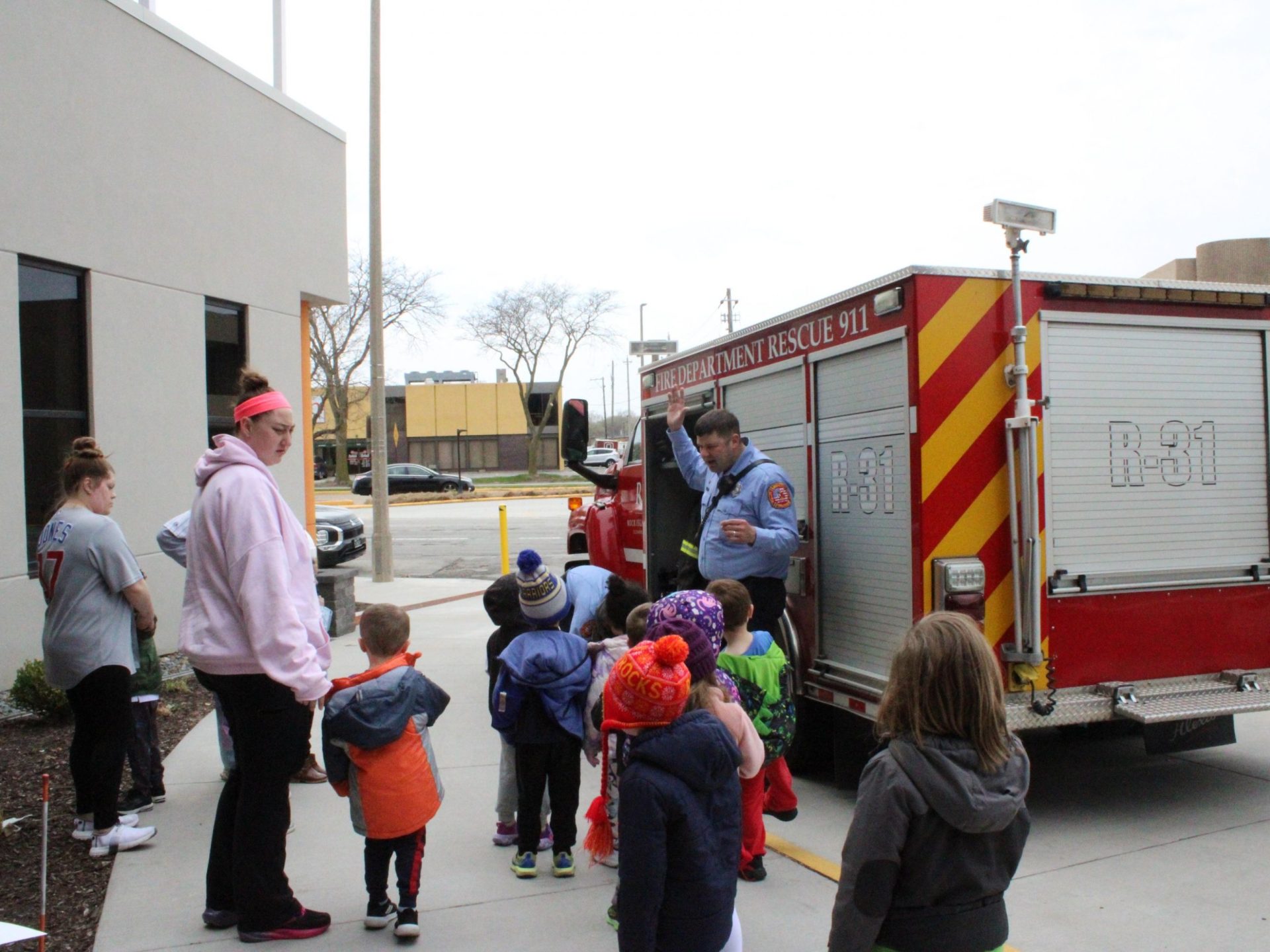 Wednesday’s theme was Work Together. Students participated in cooperative games and activities in their classrooms. We also had some special visitors! Firefighters from the Rock Island Fire Department stopped by to talk to students about their jobs, fire safety, and students got to check out a couple of fire engines and firefighting equipment.